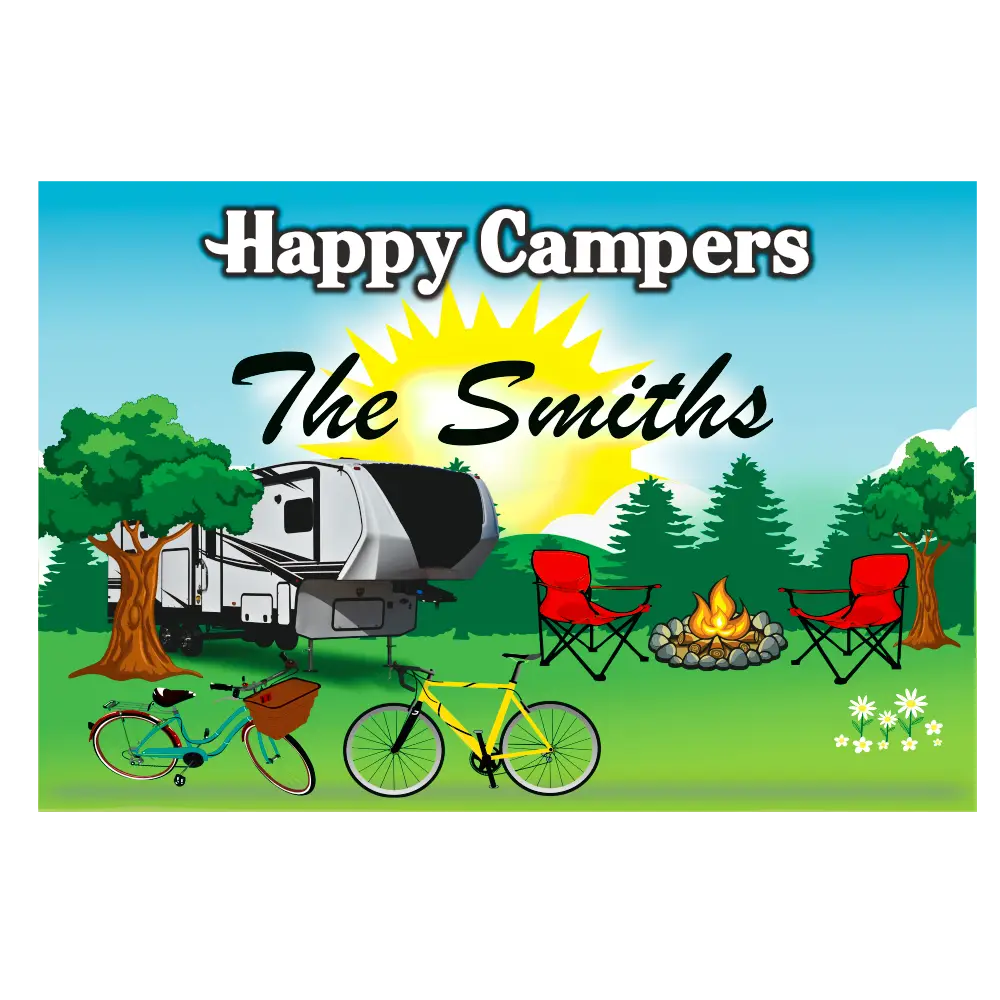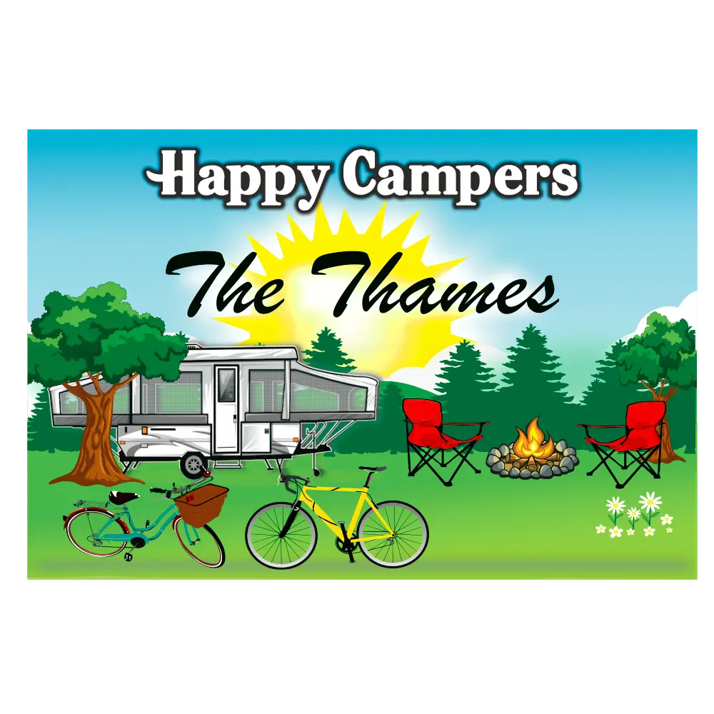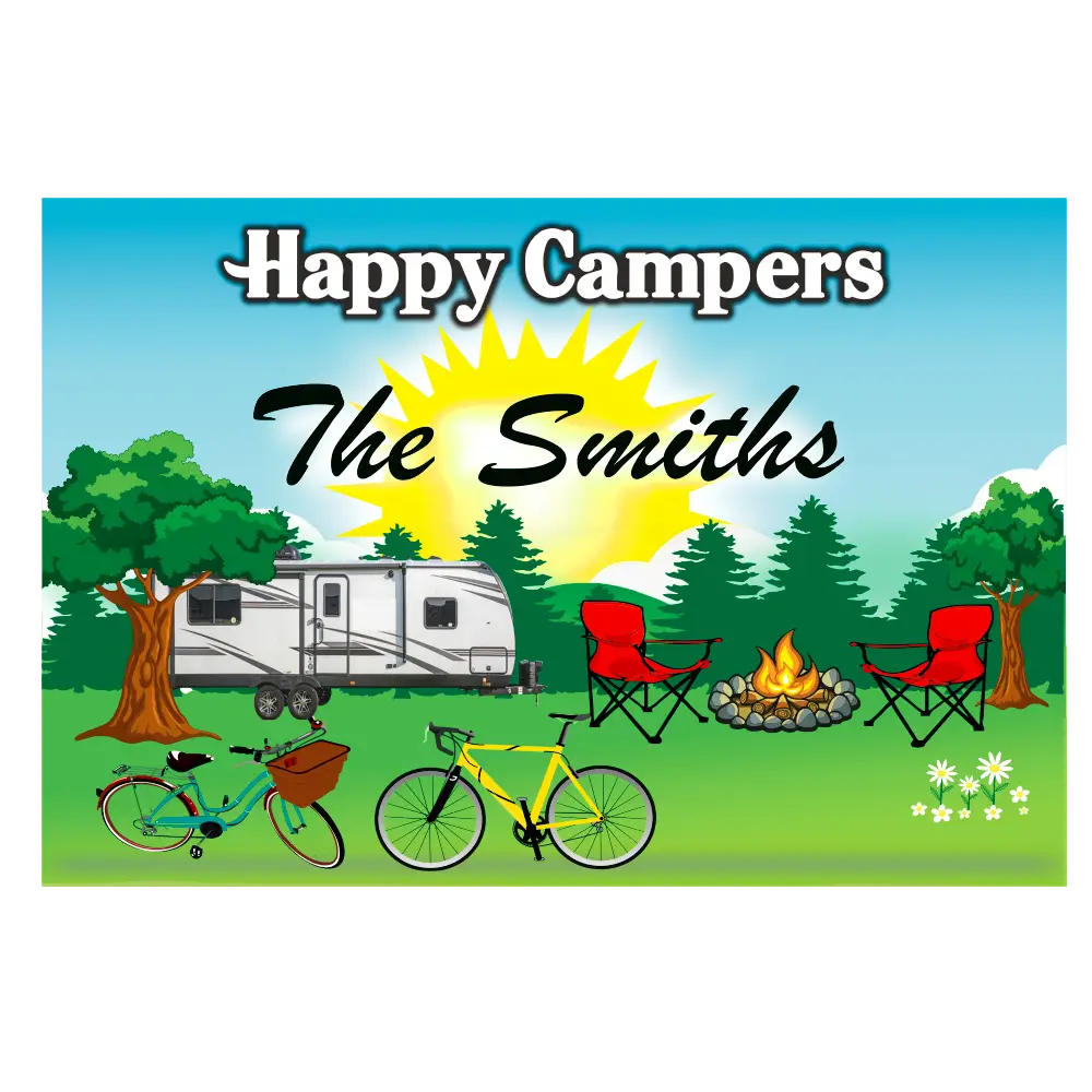 Elevate your outdoor space with the custom-made Happy Campers with Bike Sign!