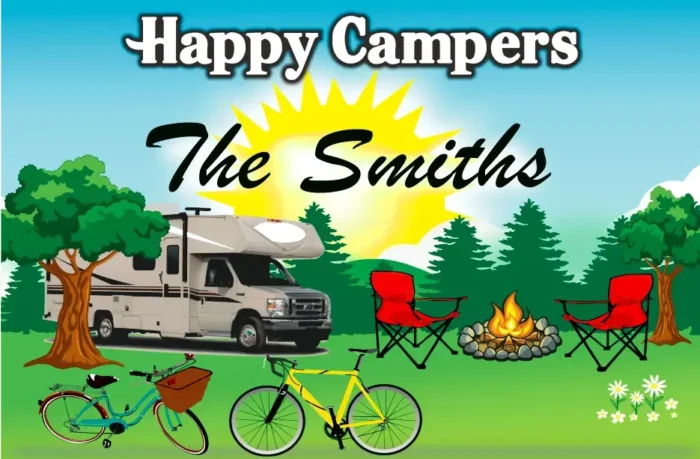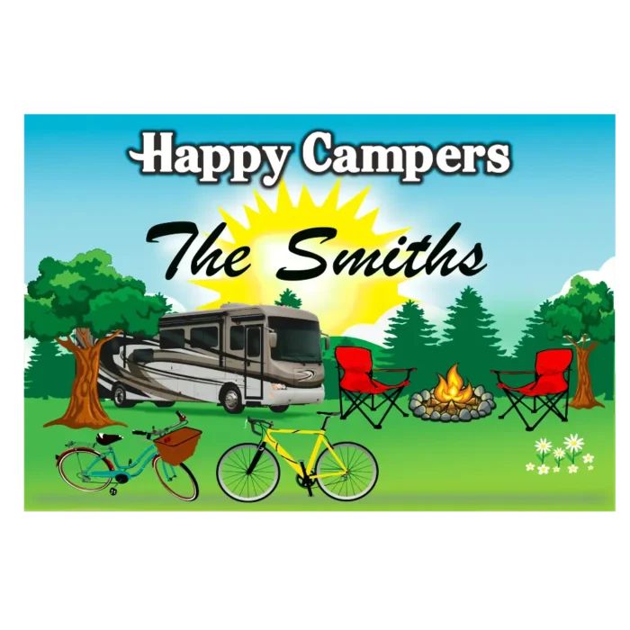 Celebrate your passion for the great outdoors with this charming, personalized sign. Whether you’re decorating your RV, cabin, or backyard, the Happy Campers Bike Sign adds a touch of rustic style and personality. Showcase your love of camping, biking, and adventure with this eye-catching, high-quality piece.